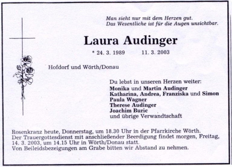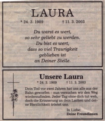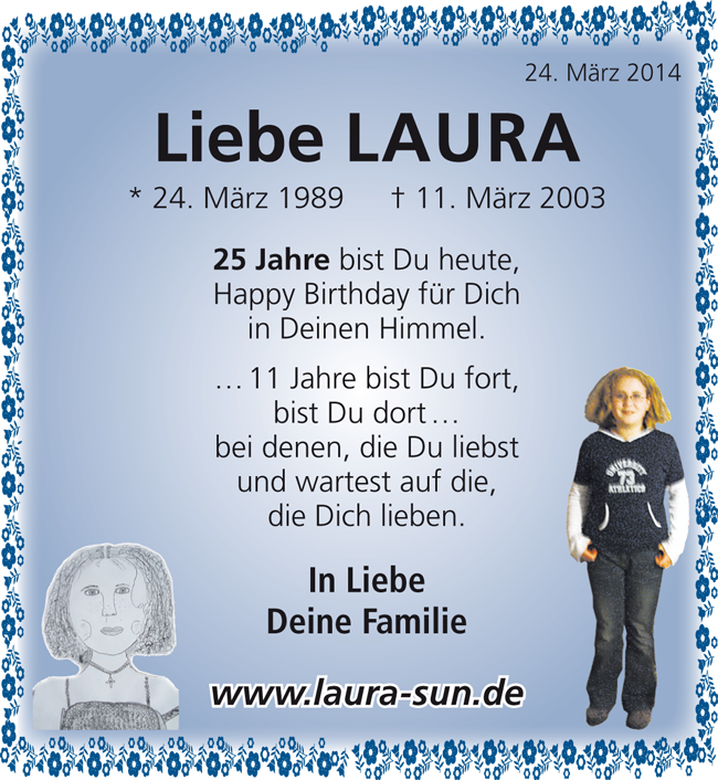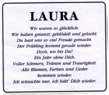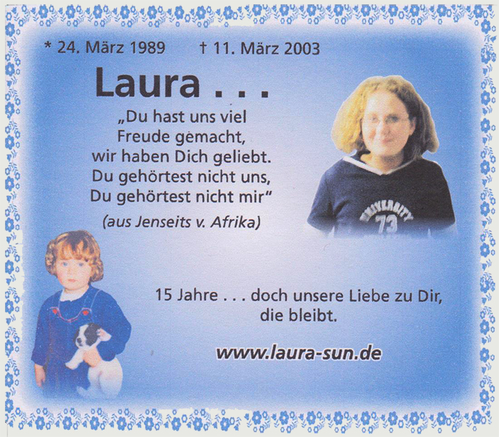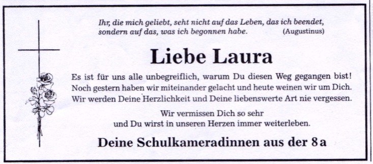 Unser Abschied von dir, liebe Laura. Dieser Tag ist unvergesslich in unsere Herzen gebrannt...