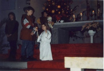 Mit drei Jahren, war sie in der Kirche die kleinste und jüngste Mitwirkende. Sie spielte einen Engel und sagte :“Ich verkünde Euch eine große Freude, heute ist der Heiland geboren, Christus, der Herr!“
