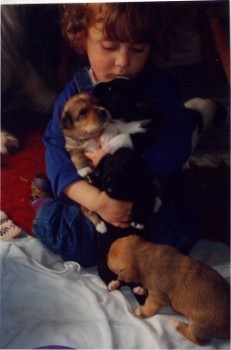 Als Laura 3 Jahre alt war bekam unser Hund „Momo“ 9 Hundebabies.